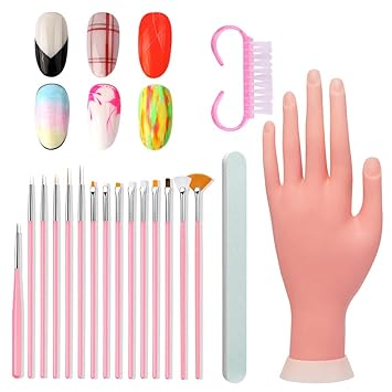 Amazon Com Buqikma Practice Hand For Acrylic Nails Kit With 15pcs Nail Painting Brush Nail File And Dust Brush Movable Flexible Nail Manicure Tool For Beginners Left Hand Kit Beauty