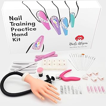 Amazon Com Nail Training Practice Hand Kit Pass Your Boards Like A Pro Manicure Set Includes Practice Hand For Acrylic Nails 15 Pc Brush Set 500 False Nail Tips Rhinestones Nail
