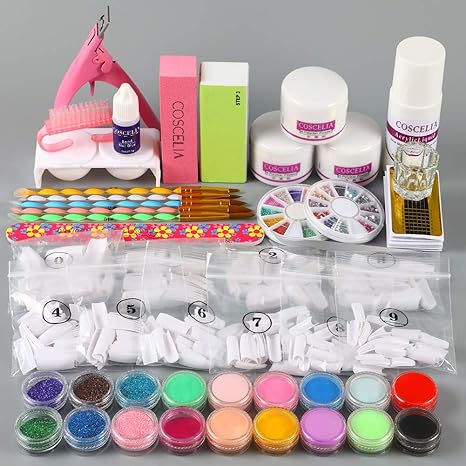 Amazon Com Coscelia Acrylic Nail Kit Acrylic Powder And Liquid Set Professional Acrylic With Everything For Beginner Glitter Powder False Nail Tips Nail Decorations Tools Starter Kit Beauty