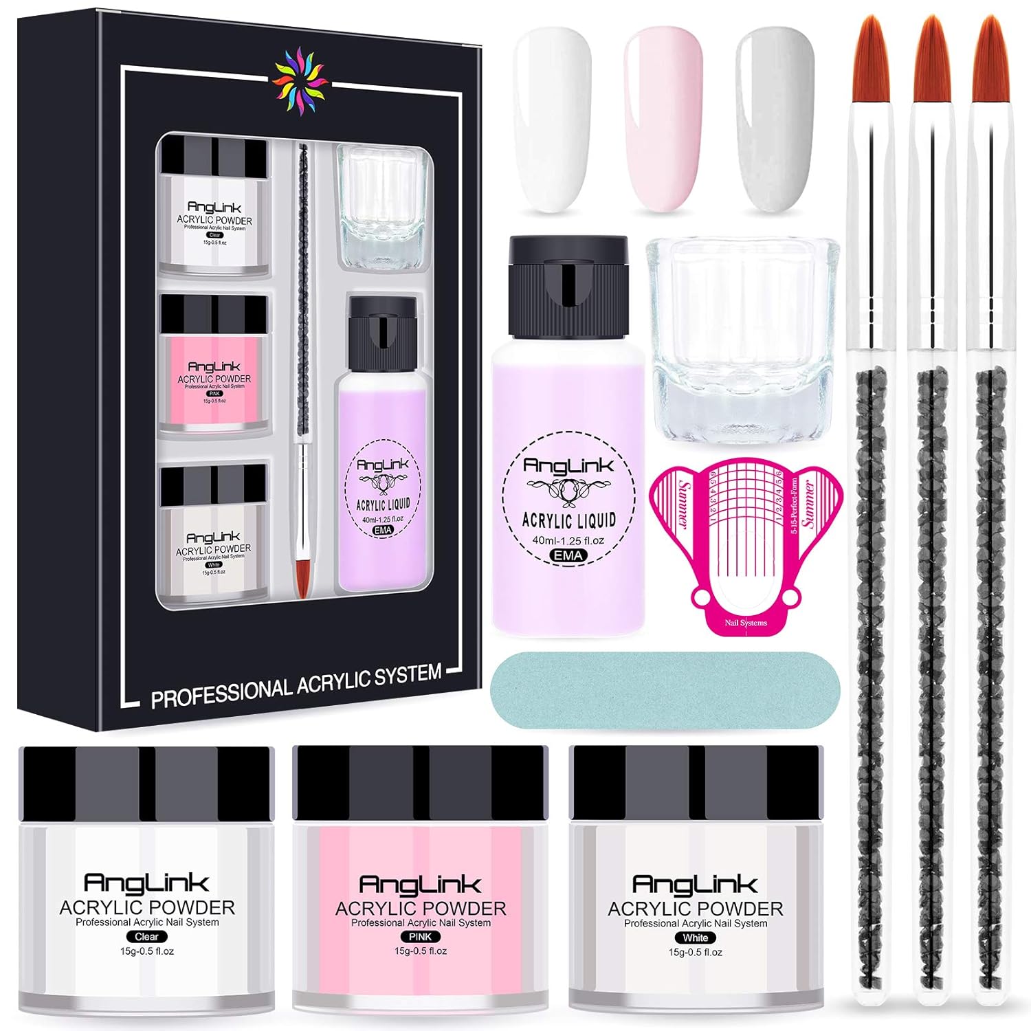 Amazon Com Anglink 10 In 1 Acrylic Nail Kit Acrylic Powder And Professional Liquid Monomer Set With Acrylic Nail Brush Nail Forms Tips For Acrylic Nails Extension Starter Kit Beauty