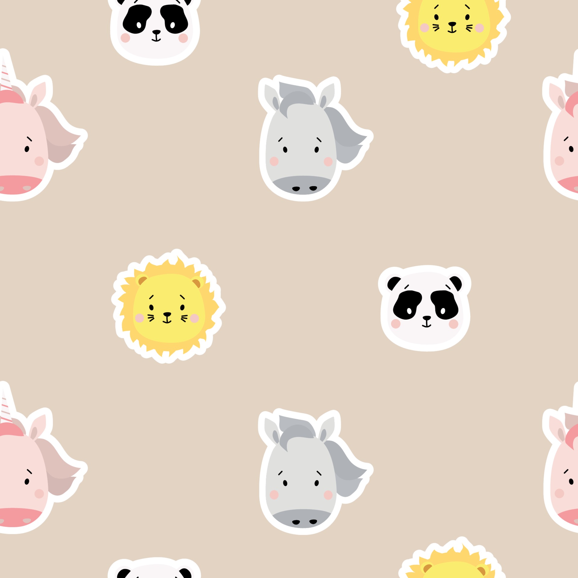 Seamless Patterns Childrens Collection Cute Animal Stickers Panda And Horse Lion And Pink Unicorn On A Gentle Lilac Background For Design Textiles Packaging And Wallpaper Vector 2132791 Vector Art At Vecteezy