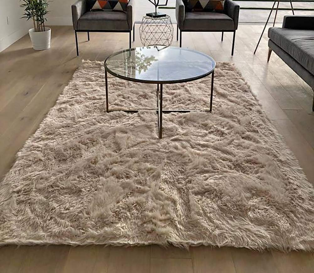 Amazon Com 5x7 Feet Beige Color Faux Sheepskin Animal Skin Sheep Hide Solid Soft Plush Pile Area Rug Carpet Rug Modern Contemporary Decorative Designer Indoor Bedroom Living Room Polyester Made Kitchen Dining