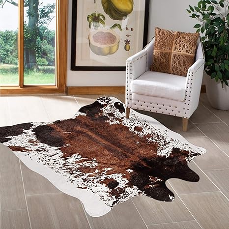 Purp Pie Large Faux Cowhide Rug 4 6ft X 6 6ft Tricolor Cow Print Area Rugs For Living Room Bedroom Cruelty Free Animal Skin Hide Carpet For Home Office Western Cowboy Boho Decor Brown Storepaperoomates