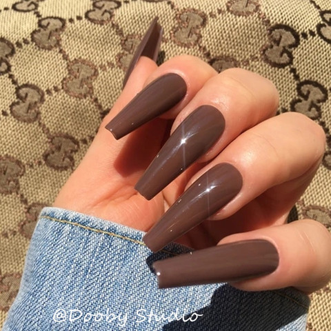 Buy Online Impress Ballerina Nep Nagels Xxl Long Coffin Press On Nails Fake Artificial Brown Full Cover False Nails With Adhesive Tap Tipsy Alitools