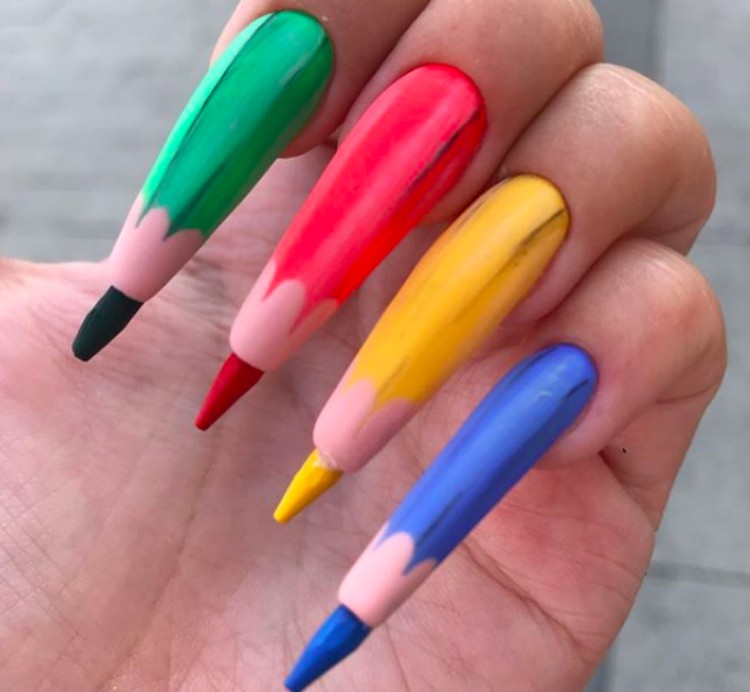 Acrylic nails different colors on each nail. The different types of acrylic nails come in different shapes fitted for various colors designs nail shapes and lengths finger shapes and hand types. Each nail gets a different color creating a tiny gradient on your fingertips. The tips mentioned can hopefully help you identify the best possible nail shape for you.