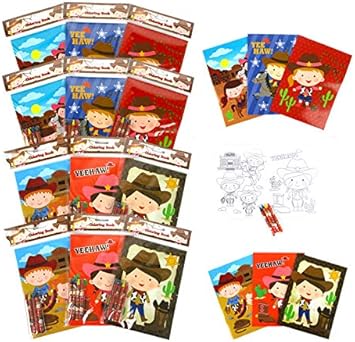 Amazon Com Tinymills Western Cowboy Cowgirl Coloring Book Set With 12 Coloring Books And 48 Crayons Western Cowboy Cowgirl Birthday Party Supplies Favor Bag Filler Carnival Prizes Rewards Office Products