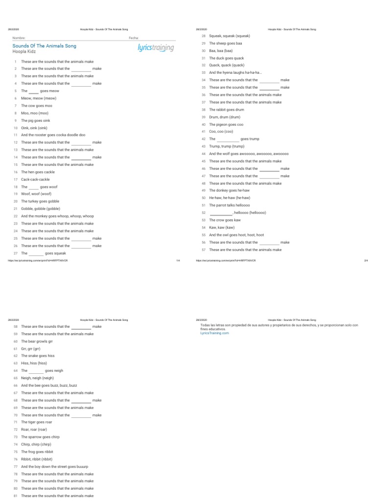 Imprimir Letra Lyricstraining Animals Mammals Nature