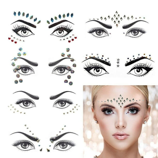 8 Sheets Rhinestone Face Gems Sticker Face Jewels For Face Decorations Bindi Temporary Stickers By Piaopiaoniu Beauty Amazon Com