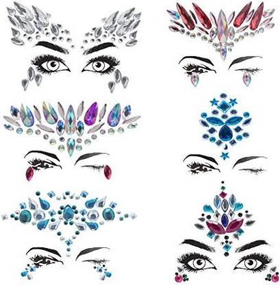 Amazon Com Shineyes 6 Pcs Music Festival Face Jewels Rhinestone Rave Face Gems Glitter Crystal Birthday Party Festival Face Sticker Eyes Face Body Temporary Tattoos For Festival Party Beauty