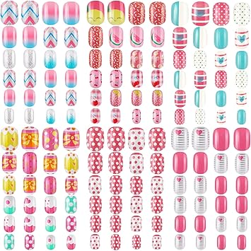 Amazon Com 144 Pieces Children Nails Kids False Nails Girls Cartoon Press On Fake Nails Colorful Pre Glue Full Cover Nails Cute Short Acrylic Artificial Nail Tips Kits For Kids Mixed Styles Beauty