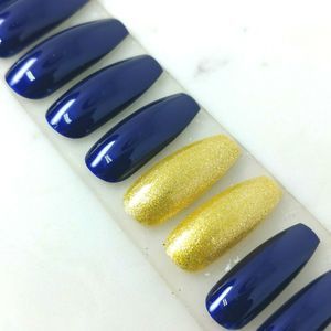 Handmade Makeup Press On Nails 2pc Coffin Navy Blue Gold Glitter Poshmark
