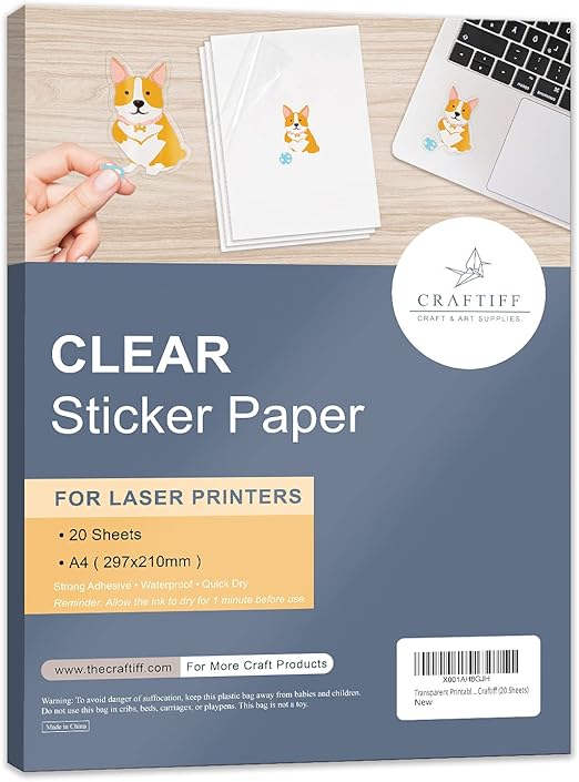 Amazon Com Transparent Printable Vinyl For Laser Printer Clear Glossy Sticker Paper Waterproof 20 Sheets By Craftiff Office Products