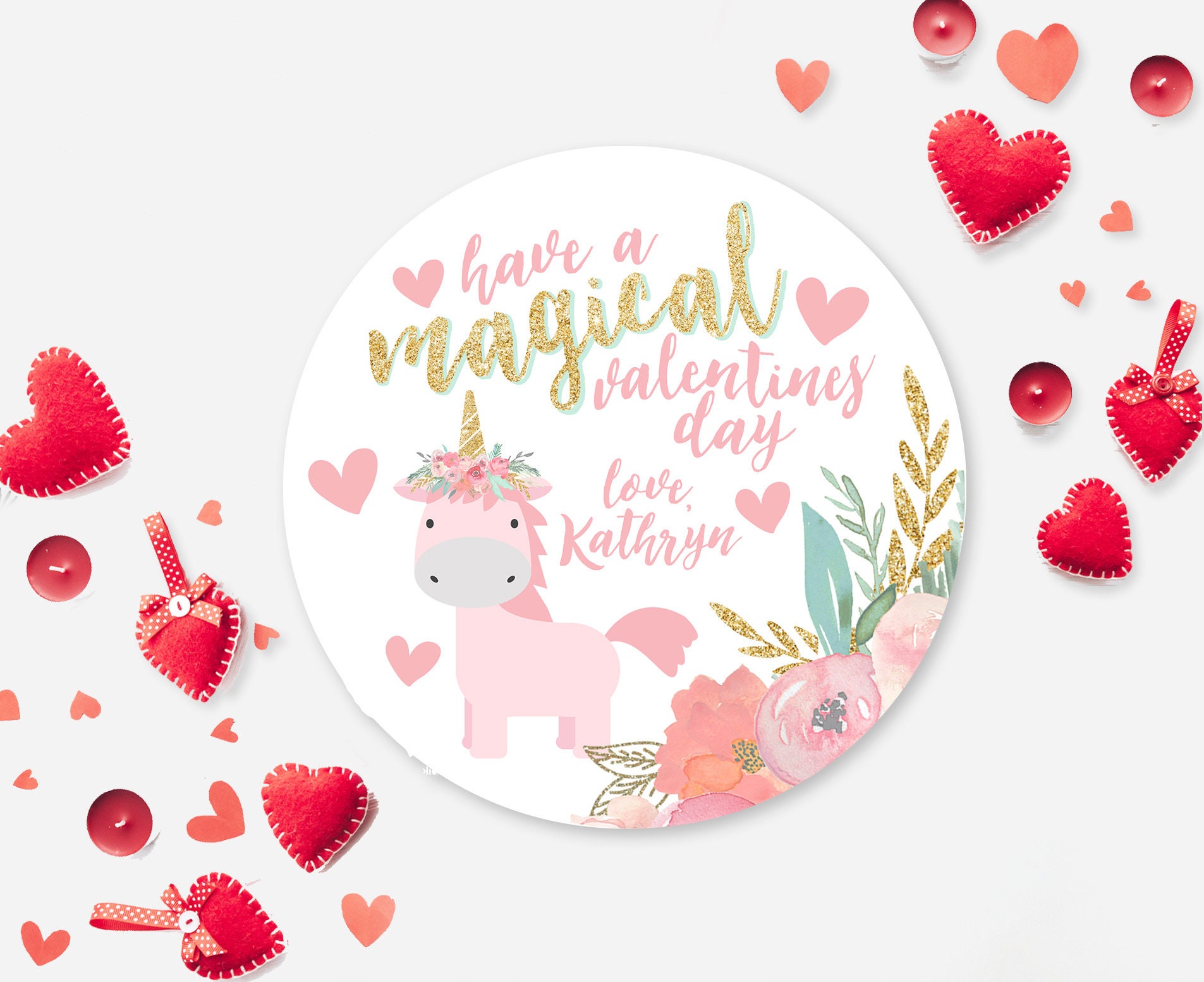 Unicorn Valentines Stickers Customized Valentines Stickers Etsy
