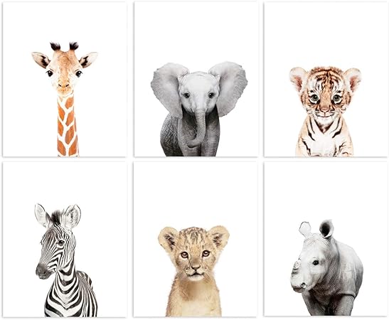 Amazon Com Set Of 6 Baby Animal Nursery Prints 8 X10 Unframed 6 Safari Prints Posters Prints