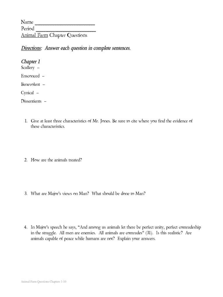 Animal Farm Study Guide Chapters One Four Pdf Free Download