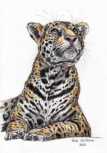Amazon Com Jaguar Watercolor Original Gala Kostroma Cat Drawing Handmade